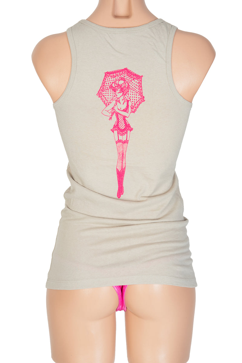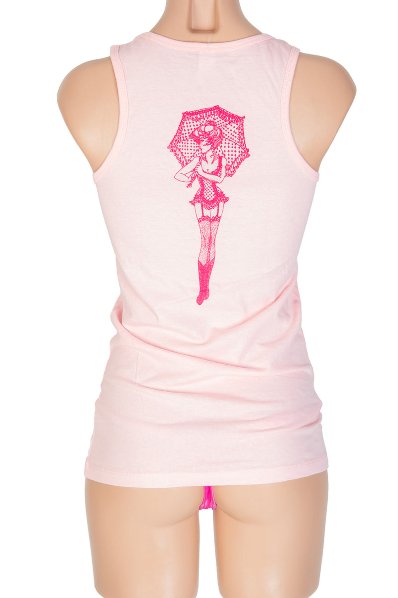 Trashy Lace-Up Ruffle Tank Top (Small Parasol Girl Print)