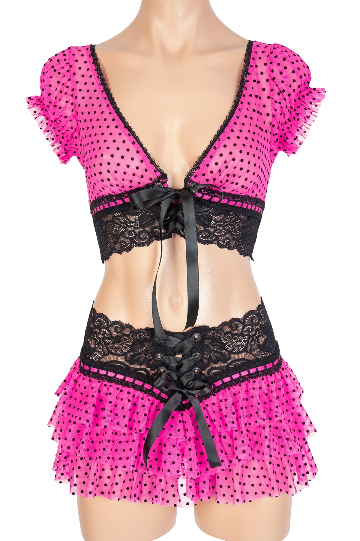 Color: Nude Scarlet Dots/Black Lace/Pink Bow