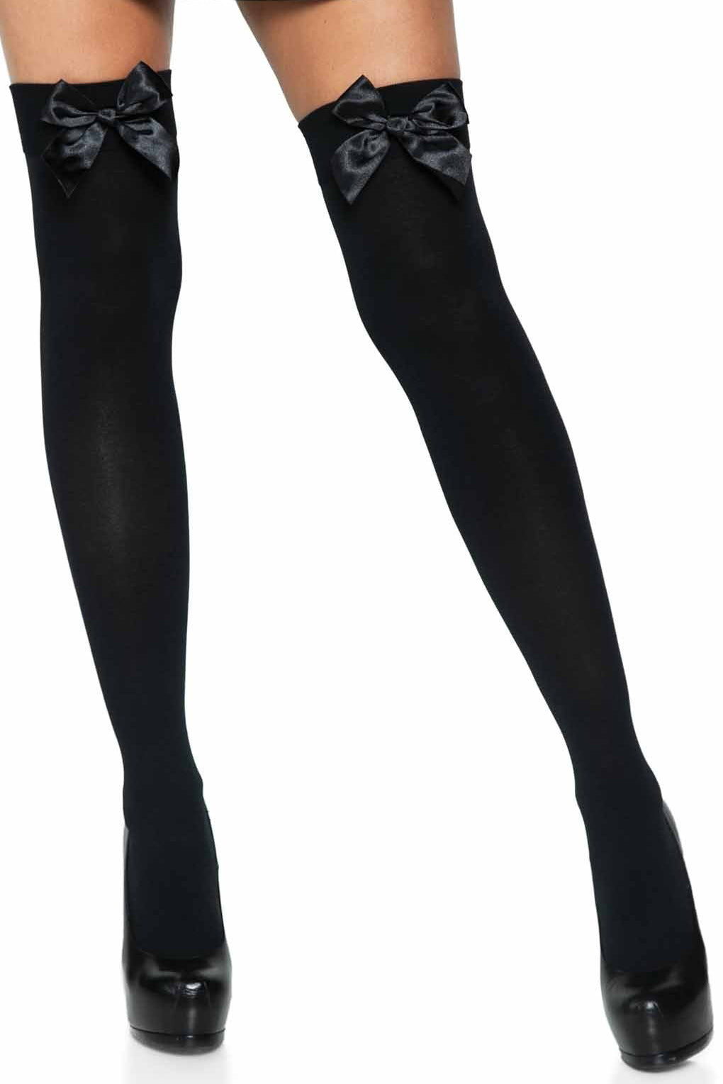 Bow Top Opaque Thigh Highs